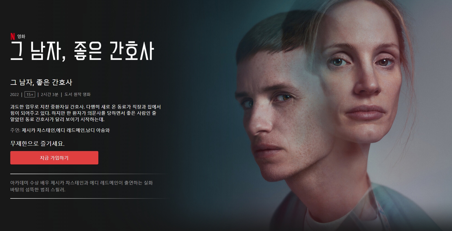 제시카 차스테인과 에디 레드메인이 토비아스 린드홀름 감독의 그 남자, 좋은 간호사(The Good Nurse)에 출연합니다. 이 영화는 끔찍한 사건을 바탕으로 한 스릴러입니다.