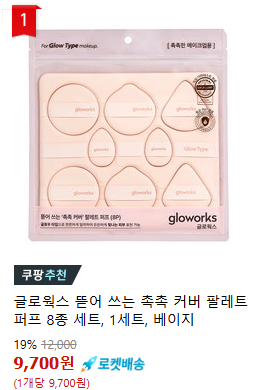 현재 별점 5.0점, 리뷰 289개를 가진 글로웍스 뜯어 쓰는 촉촉 커버 팔레트 퍼프 8종 세트! 지금 쿠팡에서 더 저렴하고 다양한 퍼프 제품들을 확인해보세요.