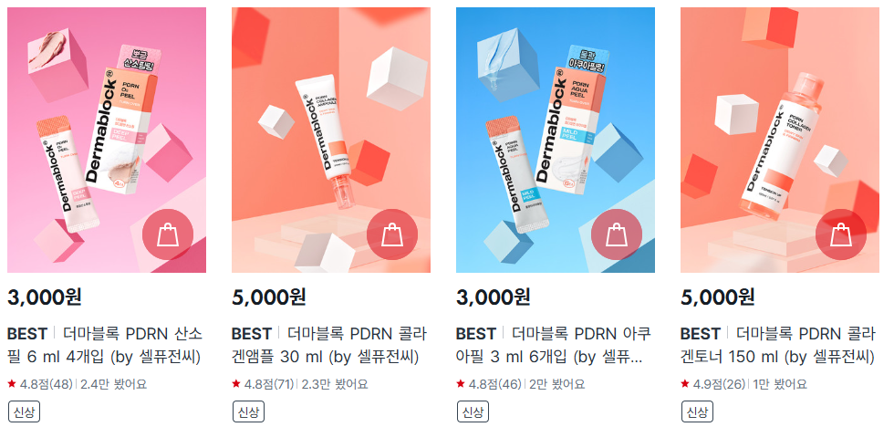 - 더마블록 PDRN 콜라겐앰플: 연어 PDRN+콜라겐+히알루론산, 캡슐 제형, 물광·탄력 부스팅