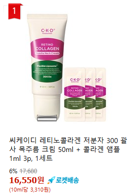 두 번째로 소개할 제품은 피부 관리템인 CKD 레티노콜라겐 저분자 300 괄사 목주름 크림입니다. 요즘 목주름 관리가 필수가 된 만큼, 저는 이 크림을 애정하며 사용하고 있는데요. 특히 쿠팡에서 크림과 함께 콜라겐 앰플까지 구성된 세트를 저렴하게 구매할 수 있어 정말 만족스러웠어요.
