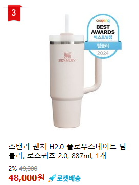 첫 번째로 소개할 제품은 요즘 MZ 세대의 필수템으로 불리는 스탠리 퀜처 H2.0 플로우스테이트 텀블러입니다. 이미 SNS와 커뮤니티에서 난리가 난 제품인데요, 쿠팡에서도 가성비 좋게 구매할 수 있어 정말 강력 추천합니다.