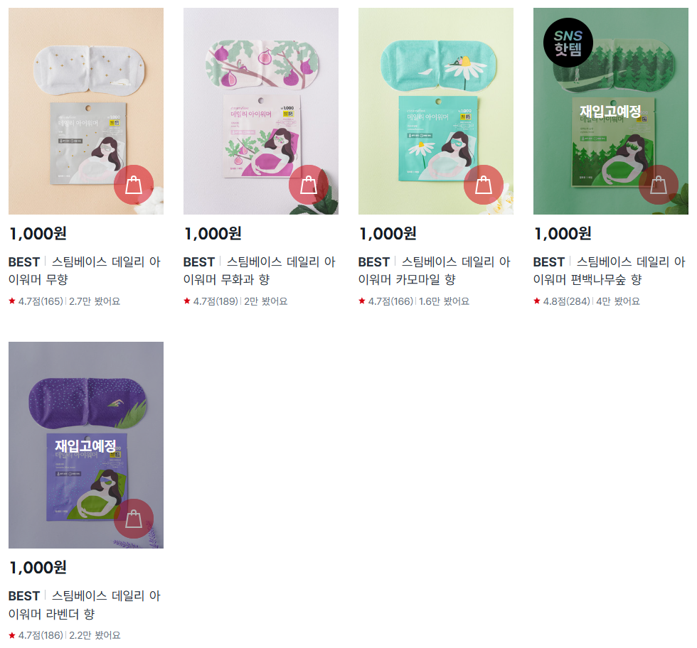 | 스팀베이스 데일리 아이워머 | 따뜻한 스팀으로 눈 피로 완화 | 1,000원 |