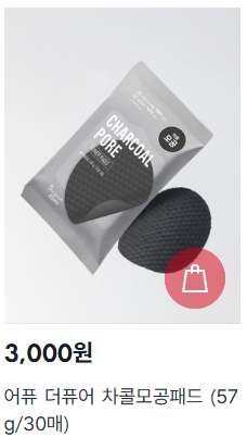 | 어퓨 더퓨어 차콜 모공 패드 | 피지 & 모공 케어 | 3,000원 |