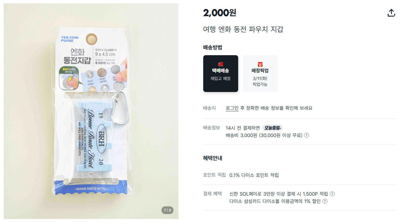 | 엔화 동전지갑 | 귀엽고 실용적인 미니 지갑 | 2,000원 |