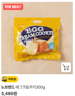 | 에그크림쿠키 | 부드럽고 달콤한 크림 쿠키 | 3,480원대 |