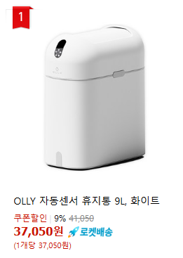 현재 별점 4.7점, 리뷰 1329개를 가진 OLLY 자동센서 휴지통 9L! 지금 쿠팡에서 더 저렴하고 다양한 휴지통 제품들을 확인해보세요.