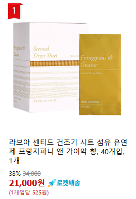 3️⃣ 라브아 센티드 건조기 시트 프랑지파니 앤 가이악 – 빨래할 때마다 호텔 스멜 🌸
