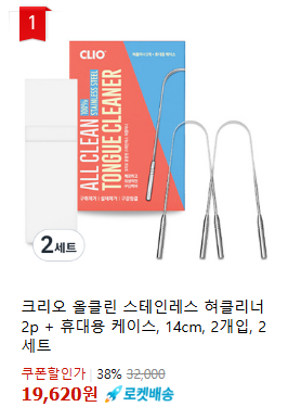 현재 별점 4.7점, 리뷰 2267개를 가진 크리오 올클린 스테인레스 혀클리너 2p + 휴대용 케이스! 지금 쿠팡에서 더 저렴하고 다양한 혀클리너 제품들을 확인해보세요.