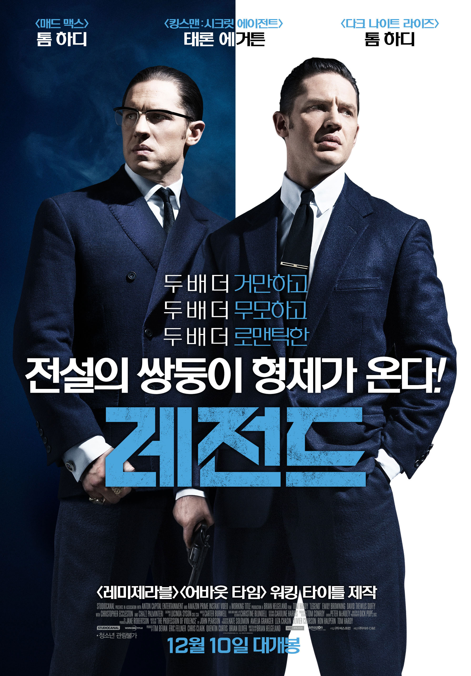 영화 "레전드"는 2015년에 개봉한 브라이언 헬겔랜드(Brian Helgeland) 감독의 범죄 영화로, 톰 하디(Tom Hardy)가 주연으로 출연합니다. 이 영화는 캐릭터 두 명을 톰 하디가 연기하는 독특한 스타일의 범죄 드라마입니다.