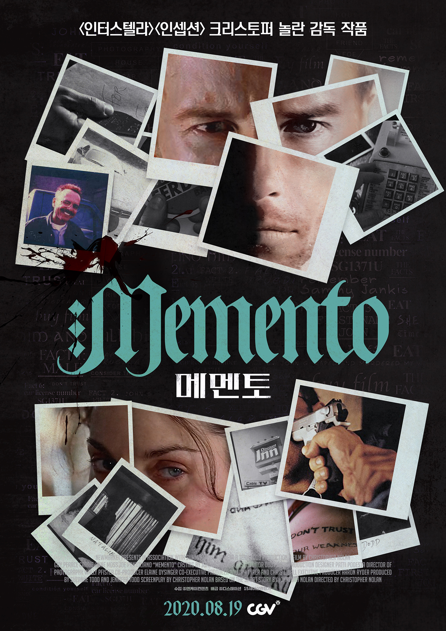 《메멘토》는 2000년에 개봉한 미국 영화로, 크리스토퍼 놀란이 감독하고 제작한 작품입니다. 이 영화는 현대의 능력자인 레오나르드 셀비(Lenny)의 이야기를 다룹니다. 셀비는 사고로 기억력을 잃고, 그 날마다 새로운 기억을 가지게 되는 상태입니다.