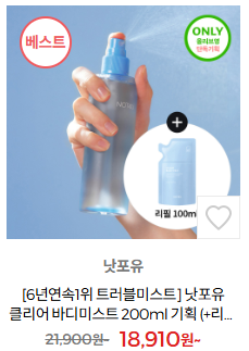 | 낫포유 클리어 바디미스트 | 등드름, 가드름 고민 해결! | 18,000원대 |
