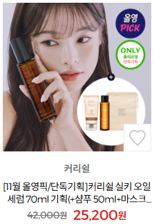 마지막으로 소개할 제품은 커리쉴 실키오일 세럼입니다. 이 제품은 모발 관리에 특화된 헤어 세럼으로, 푸석하고 손상된 머릿결을 윤기 나고 부드럽게 만들어주는 아이템이에요.