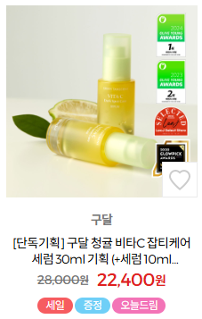 구달 청귤 비타C 잡티케어 세럼은 ‘2주 잡티 이별 세럼’이라는 별명이 있을 정도로 잡티 완화에 특화된 제품입니다.