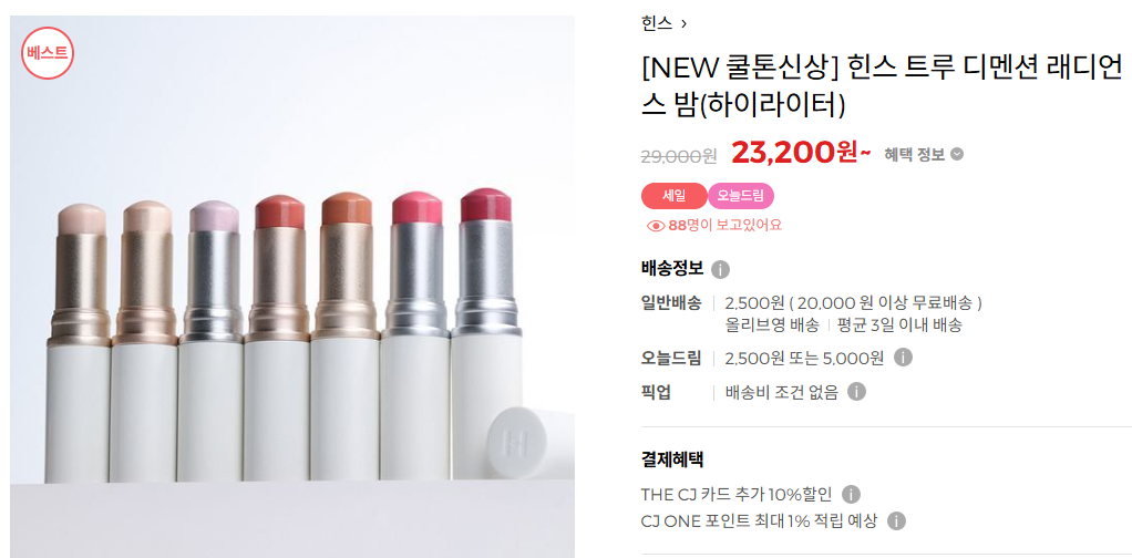 다음으로 소개할 아이템은 힌스 트루 디멘션 래디언스 밤이에요. 요즘 메이크업 트렌드는 뭐니 뭐니 해도 내추럴 광채 피부 아니겠어요? 이 제품은 투명한 클리어 컬러로, 피부에 자연스러운 윤기를 더해주는 멀티밤이에요.