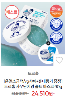 첫 번째 추천템은 힐링의 끝판왕, 토르홉 사우난지앙 솔트마스크입니다. 이 제품은 이름 그대로 온열감과 함께 피부를 편안하게 만들어주는 마스크팩인데요, 특히 소금 성분이 들어 있어 피부 각질 제거와 동시에 딥 클렌징 효과를 선사해줍니다.