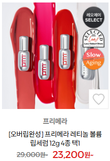 - 프리메라 레티놀 볼륨 립세럼: 입술 주름 개선 + 보습 케어.
