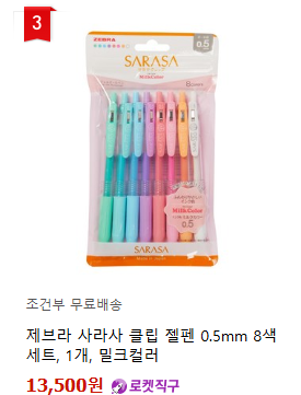마지막 추천템은 공부하는 학생, 필기와 다꾸를 사랑하는 모든 이들에게 추천하는 제브라 사라사 클립 젤펜 0.5mm 8색 세트입니다. 사라사 펜은 일본 젤펜의 자존심이라고 할 만큼 매끄러운 필기감과 선명한 컬러로 유명하죠.