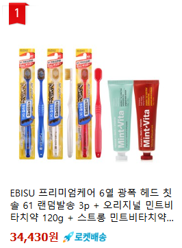 쿠팡에서 EBISU 프리미엄케어 6열 광폭 헤드 칫솔 61 랜덤발송 3p + 오리지널 민트비타치약 120g + 스트롱 민트비타치약 120g 세트, 1세트 구매하고 더 많은 혜택을 받으세요! 지금 할인중인 다른 치약/