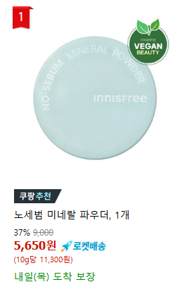 4️⃣ 이니스프리 노세범 미네랄 파우더 – 기름기 싹 잡아주는 필수템! 🌿