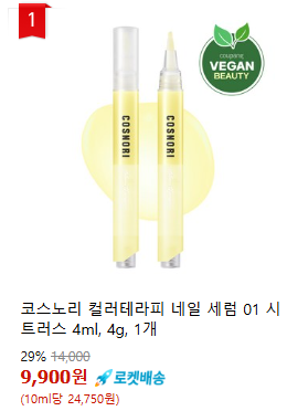 5️⃣ 코스노리 컬러테라피 네일 세럼 01 시트러스 – 손끝까지 건강하게! 🍊