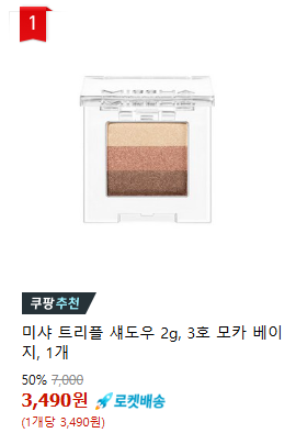 현재 별점 4.5점, 리뷰 17026개를 가진 미샤 트리플 섀도우 2g, 3호 모카 베이지, 1개! 지금 쿠팡에서 더 저렴하고 다양한 아이섀도 제품들을 확인해보세요.