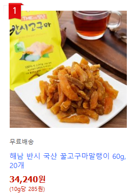 - 해남 반시 국산 꿀고구마말랭이는 달콤한 자연 간식을 좋아하는 분들에게 강력 추천합니다.