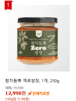 현재 별점 4.4점, 리뷰 403개를 가진 참치듬뿍 제로쌈장, 250g, 1개! 지금 쿠팡에서 더 저렴하고 다양한 쌈장 제품들을 확인해보세요.