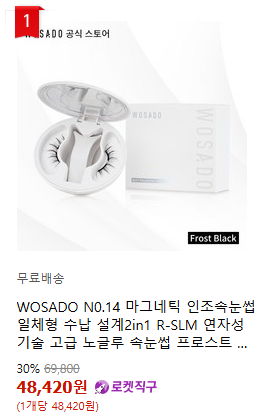첫 번째는 요즘 핫한 wosado 마그네틱 인조속눈썹 일체형입니다. 속눈썹 붙이는 거 어려워서 포기하신 적 있나요? 혹은 인조속눈썹을 붙였다가 너무 어색해서 다시는 안 쓰겠다고 다짐하셨나요? 그런 분들에게 강력 추천하는 아이템이에요!