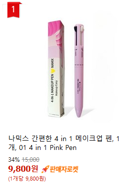 다음으로 소개할 아이템은 나믹스 간편한 4 in 1 메이크업 펜입니다. 어린 시절 사용했던 4색 볼펜 기억하시나요? 이 제품은 메이크업 제품으로 4가지 기능을 하나에 담은 메이크업 볼펜이라고 보면 돼요.