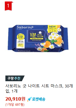 현재 별점 4.6점, 리뷰 162개를 가진 사보리노 굿 나이트 시트 마스크, 30개입, 1개! 지금 쿠팡에서 더 저렴하고 다양한 시트마스크 제품들을 확인해보세요.