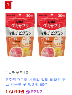 유하미카쿠토 서프리 멀티 비타민 핑크 자몽맛 구미, 60정, 2개 - 비타민/건강식품 | 쿠팡