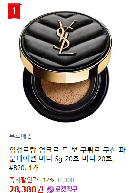 현재 별점 4.5점, 리뷰 867개를 가진 입생로랑 엉크르 드 뽀 쿠튀르 쿠션 파운데이션 미니 5g 20호 미니 20호, #B20, 1개! 지금 쿠팡에서 더 저렴하고 다양한 쿠션/팩트 제품들을 확인해보세요.